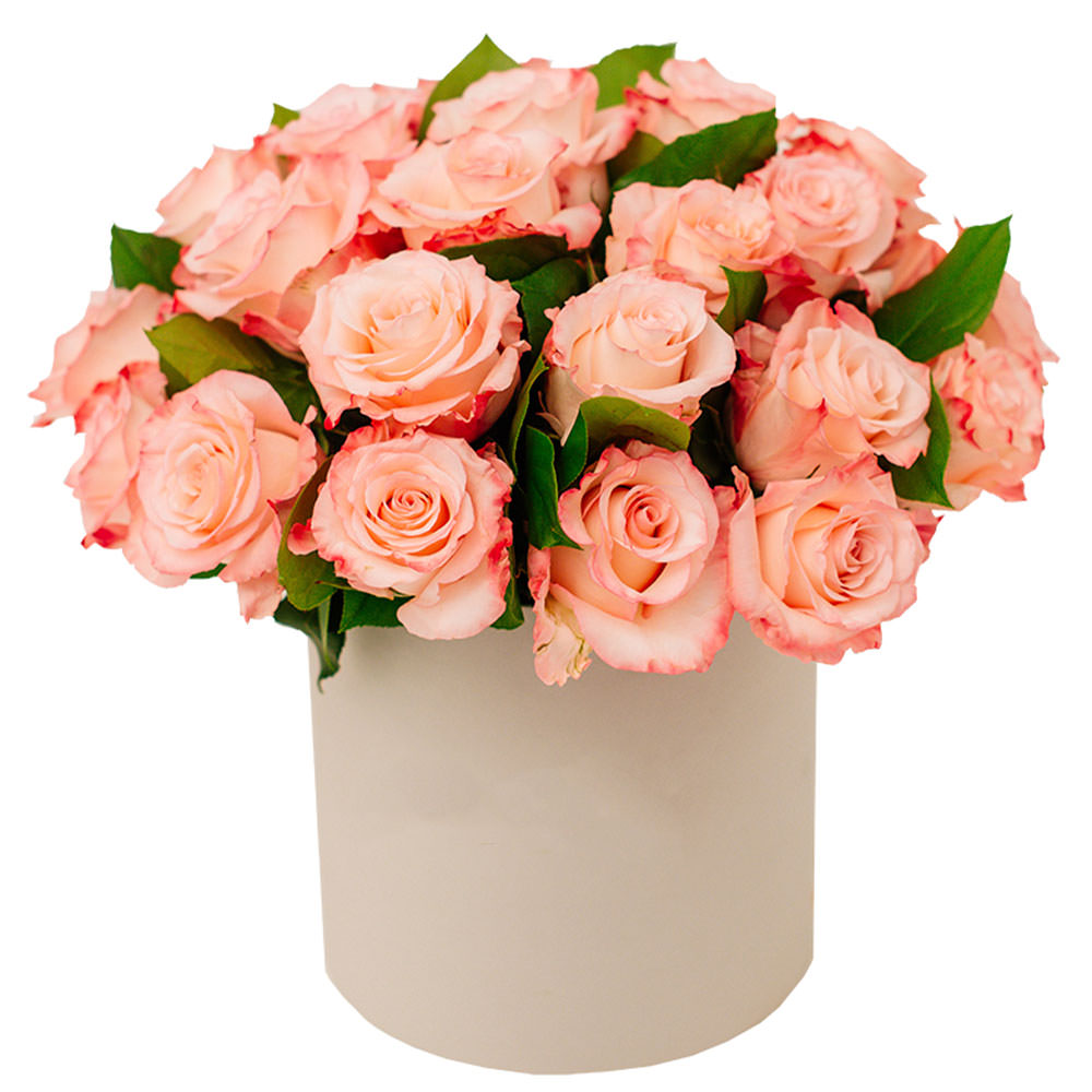 Роза одноголовая персиковая, зелень. Упаковка (шляпная коробка, квадратный бокс, коробка сердце, оазис)