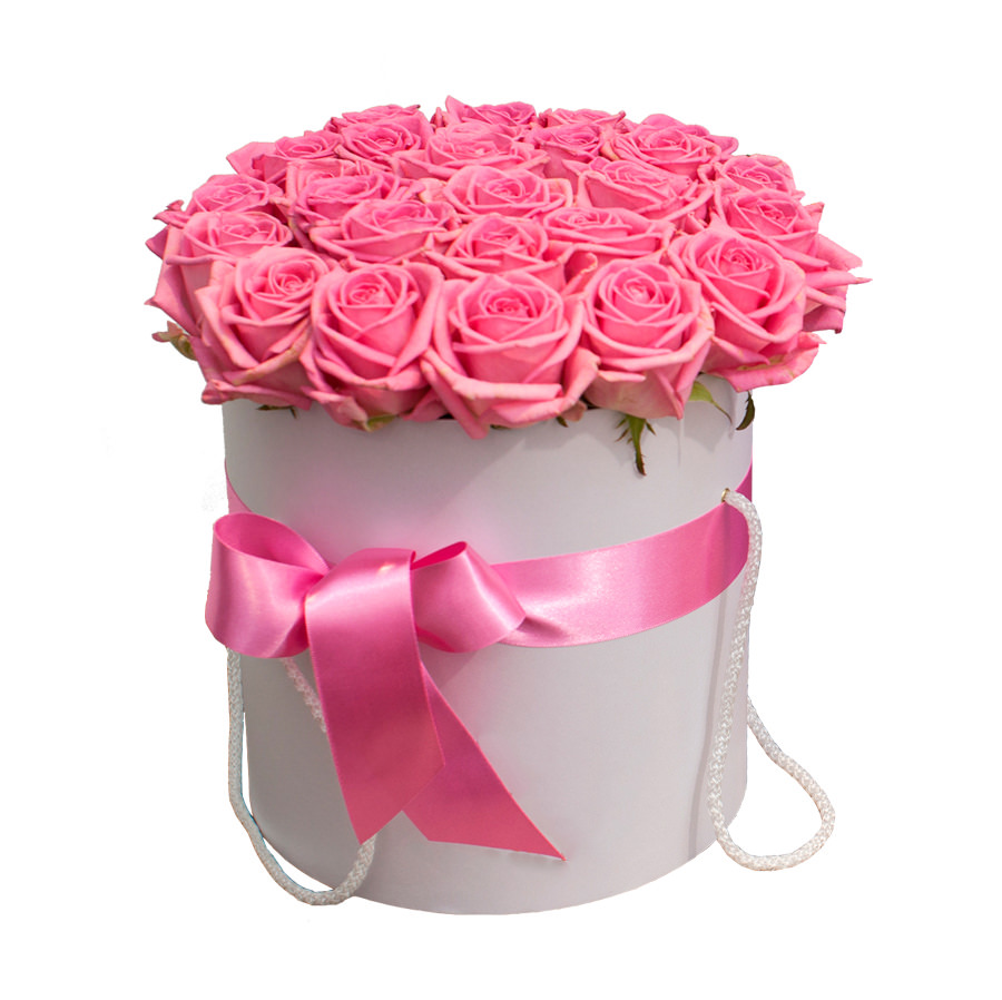 Цветы в коробке «Розовые Розы» с доставкой по г Вологда: вы можете заказать букет в супермаркете цветов «Флормания» по цене от 2990 руб.